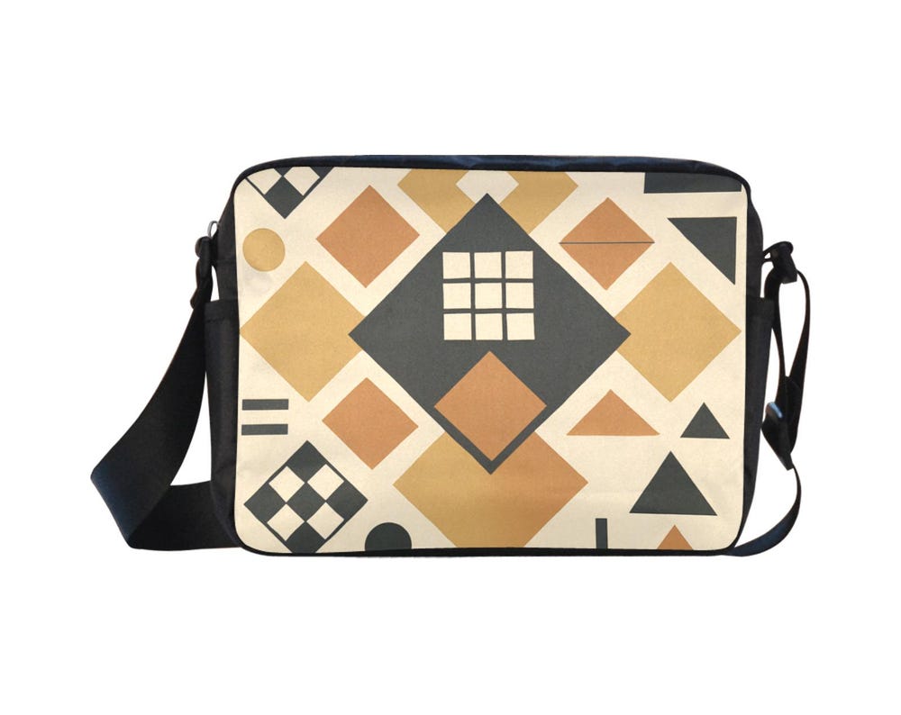 Choose distinction, choose functionality—choose our Geometric Shapes Messenger Bag.